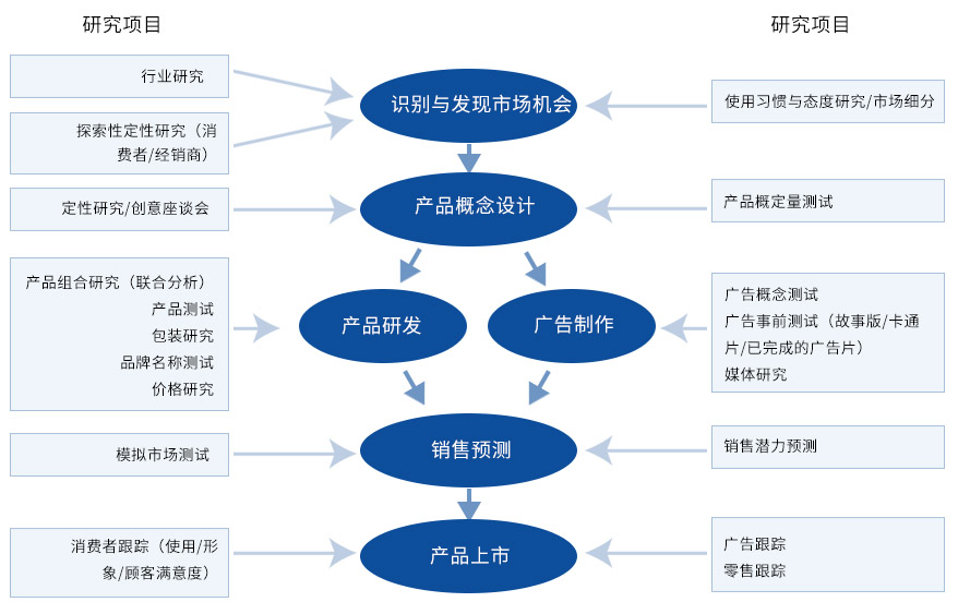 企業管理人員常常采用這種方法研究本企業產品的營銷活動。產品研究通常更多地用來指新產品市場研究和產品定位研究,由于新產品研發不定性與產品定位風險性,因此借助于市場研究減少企業的潛在風險。