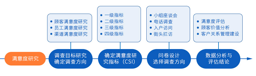 客戶滿意度研究(Consumer Satisfaction Research,簡稱CSR)是指通過對影響被測量對象滿意度的因素進行分析,獲得客戶對產品銷售、使用、售后等各個環節的滿意度指標評價,發現影響滿意度的因素、滿意度及消費行為三者的關系,通過優化成本,有效的提升影響滿意度的關鍵因素,改變消費者行為,建立和提升忠誠度,達到減少抱怨和流失,增加重復性購買行為,創造良好口碑,提升企業的競爭能力與盈利能力的一種研究方法。
